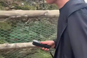 男子经过猴堆自带电击武器,吓得猴子不敢上来攻击了