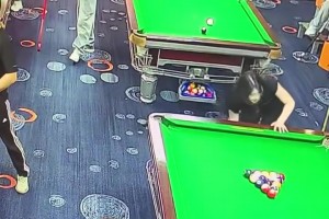 男子打台球太用力,球直接飞出去砸到了别人脑袋