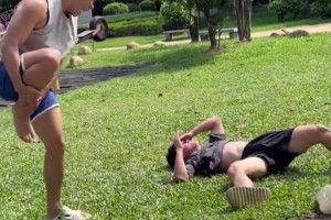 两人离得太近,结果一起表演后空翻的时候,踢到同伴的脑袋