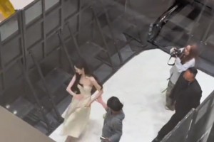 女生过通道,男生们排队在通道上,女生害羞到不敢过去!