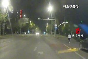 视频车正常行驶时,女子突然加速跑上来撞到车
