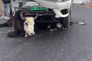小货车在路上撞死五头牦牛,男子庆幸“还好有保险”!