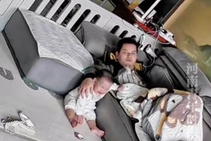 萌娃不慎跌落沙发大哭不止,宝妈见状连忙不停提醒宝爸